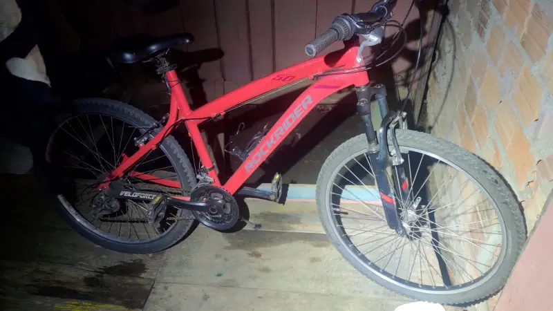 Ao ser questionado sobre um furto de bicicleta, o homem se evadiu para os fundos da residência. Desta forma, foi solicitado apoio do PPT e Canil. Nos fundos da residência, foi encontrado o suspeito, que assumiu o furto da bicicleta.